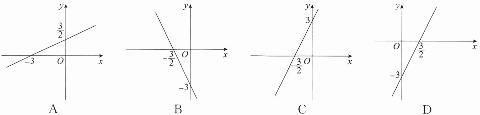 1. 在平面直角坐标系中,一次函数 $ y = 2x - 3 $ 的图象是 (