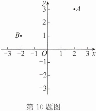 10. 如图,在平面直角坐标系中,点 $ A $ 的坐标为 $ (2,3) $,点 $ B $ 的坐标为 $ (-2,1) $,在 $ x $ 轴上存在点 $ P $,使点 $ P $ 到 $ A $,$ B $ 两点的距离之和最小.