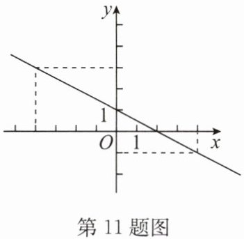 11. 一次函数$y= -\frac {1}{2}x+1$的图象如图所示,则当$-1≤y<3$时,x 的取值范围是