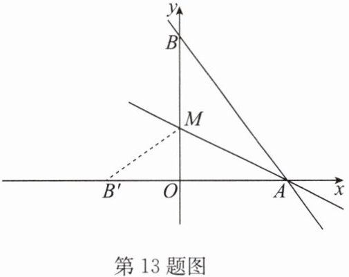 13. (14分)如图,直线$y= -\frac {4}{3}x+8与x$轴、$y轴分别交于点A和点B$,$M是OB$上的一点,若将$\triangle ABM沿AM$折叠,点$B恰好落在x轴上的点B'$处.