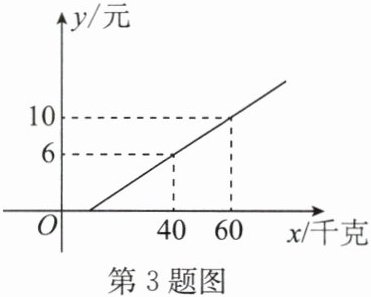 3. 根据规定,旅客可免费携带一定质量的行李,当行李的质量超过规定时,需付的行李费$y$(元)是行李质量$x$(千克)的一次函数,其图象如图所示,则此一次函数的表达式为