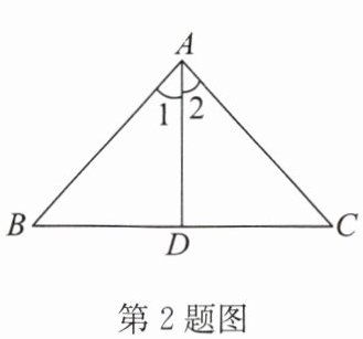 2. 如图,在$△ABC$中,$AB= AC,BD= DC$,则下列结论一定不成立的是 (