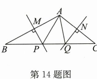 14.如图,$∠BAC= 114^{\circ }$,MP和NQ分别垂直平分AB和AC,则$∠PAQ$的度数是______