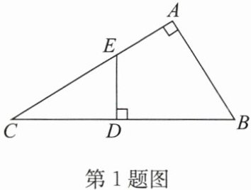 1. 如图,在$Rt△ABC$中,$∠A= 90^{\circ }$,D为斜边BC上一点,且$BD= BA$,过点D作BC的垂线交AC于点E. 求证:点E在$∠ABC$的平分线上.
