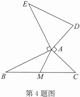 4. 如图,$AB= AE,AB⊥AE,AD= AC,AD⊥AC$,M为BC的中点. 求证:$DE= 2AM$.