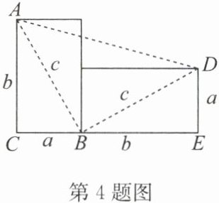 4. 如图,把一个直立的火柴盒放倒,请你用不同的方法计算梯形ACED的面积,验证勾股定理.(设火柴盒截面宽为a,长为b,对角线长为c)