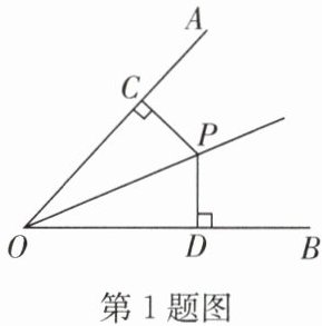 1. 如图,OP 为$∠AOB$的平分线,$PC⊥OA$,$PD⊥OB$,垂足分别是 C,D,则下列结论错误的是(