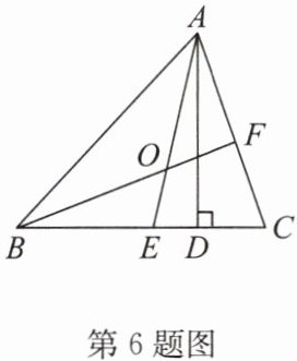 6. 如图,在△ABC中,AD是高线,AE,BF是角平分线,它们相交于点O,∠BAC= 60°,∠C= 70°,求∠EAD,∠BOA的度数.