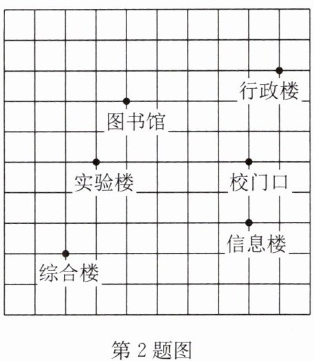 2. 如图是某校的平面示意图,已知图书馆、校门口的坐标分别为$(-2,2)$,$(2,0)$。