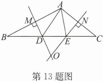 13.(18分)如图,在$\triangle ABC$中,边$AB的垂直平分线OM与边AC的垂直平分线ON交于点O$,这两条垂直平分线分别交$BC于点D$,$E$.