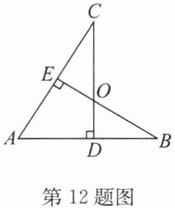 12.(12分)如图,$CD\perp AB于点D$,$BE\perp AC于点E$,$CD交BE于点O$.