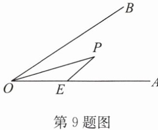 9.如图,$OP平分\angle AOB$,点$E为OA$上一点,$OE= 4$,点$P到OB$的距离是2,则$\triangle POE$的面积为______.