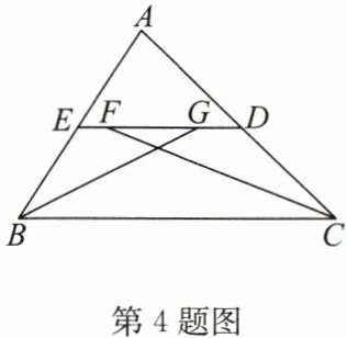 4. (2024 秋·鼓楼区月考)如图,在$\triangle ABC$中,$ED// BC,∠ABC和∠ACB$的平分线分别交 ED 于点 G,F. 若$FG= 5,ED= 8$,则$EB+DC$的值为______