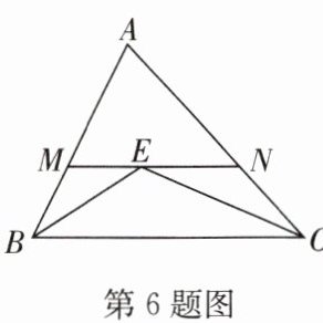 6. 如图,在$\triangle ABC$中,$AB+AC= 8,∠ABC和∠ACB$的平分线交于点 E,过点 E 作$MN// BC$,分别交 AB,AC 于点 M,N,则$\triangle AMN$的周长为 (