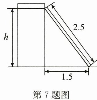 7. (无锡期末)如图,长为$2.5m$的梯子靠在墙上,梯子的底端离墙脚线的距离为$1.5m$,则梯子顶端的高度$h$是