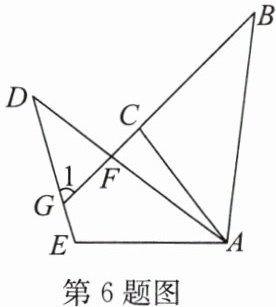6. (永春县期中)如图,$\triangle ABC\cong \triangle ADE$,BC 的延长线交 DA 于点 F,交 DE 于点 G.若$∠AED=105^{\circ },∠CAD= 20^{\circ },∠B= 30^{\circ }$,则$∠1$的度数为 (