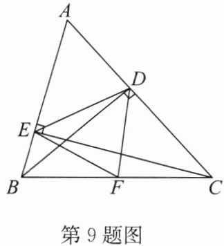 9. (鼓楼区期末)如图,在$△ABC$中,BD,CE 分别是 AC,AB 边上的高,F 是 BC 的中点.