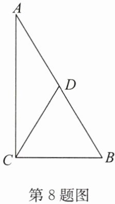 8. 如图,在$△ABC$中,CD 是中线,且$CD= \frac {1}{2}AB$.求证:$△ABC$是直角三角形.