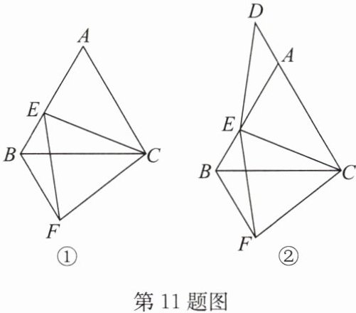 11. (26 分)如图①,已知$\triangle ABC和\triangle EFC$都是等边三角形,且点 E 在线段 AB 上.