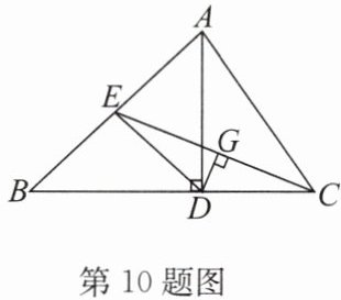 10. (16 分)如图,在$\triangle ABC$中,AD 是高,CE 是中线,G 是 CE 的中点,$DG⊥CE$,垂足为 G.