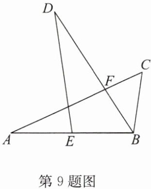 9. (2024·工业园区二模)如图,已知$\triangle ABC\cong \triangle DEB$,点 E 在 AB 上,AC 与 BD 交于点 F$,AB= $