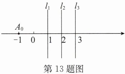 13. (常州期末)如图,过数轴上表示1的点作数轴的垂线$l_1$,过数轴上表示2的点作数轴的垂线$l_2$,过数轴上表示3的点作数轴的垂线$l_3$,….已知点$A_0表示的数为-1$,将点$A_0沿直线l_1翻折得到点A_1$,将点$A_1沿直线l_2翻折得到点A_2$,将点$A_2沿直线l_3翻折得到点A_3$,…,则点$A_{2025}$表示的数为______