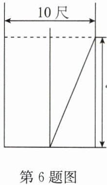 6.我国古代数学著作《九章算术》中记载了一个问题:“今有池方一丈,葭生其中央,出水一尺,引葭赴岸,适与岸齐.问水深几何.”(丈、尺是长度单位,1丈= 10尺.)其大意为:有一个水池,水面是一个边长为10尺的正方形,在水池正中央有一根芦苇,它高出水面1尺.如果把这根芦苇拉向水池的一边,它的顶端恰好到达池边的水面.水的深度是多少?如图,水深为 (