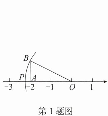 1. (东台期末)如图,数轴上点A表示的数是-2,$∠OAB= 90^{\circ },AB= 1$,以点O为圆心,OB长为半径画弧,与数轴的负半轴相交,则交点P所表示的数是 (