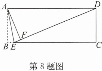8. 如图,在长方形ABCD中,$AB= 5$,$AD= 13$,E为BC上一点,将$\triangle ABE$沿AE折叠,使点B落在长方形内点F处,连接DF,$DF= 12$。