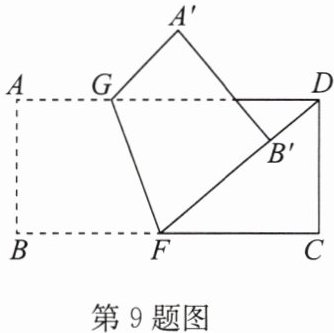 9. (张家港期中)如图,一张长方形纸片ABCD,$AB= 4$,$AD= 9$。点F在这张长方形纸片的边BC上,将纸片折叠,使FB落在射线FD上,折痕为GF,点A,B分别落在点$A'$,$B'$处。