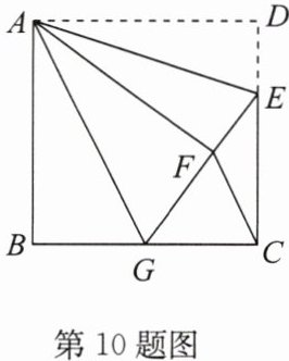 10. 如图,在正方形ABCD中,$AB= 6$,点E在边CD上,且$CD= 3DE$,将$\triangle ADE$沿AE对折至$\triangle AFE$,延长EF交边BC于点G,连接AG,CF。