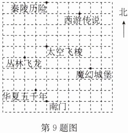 9. 国庆假期到了,八年级(1)班的两位同学到某景区游玩,在景区示意图前面,小强和小磊进行了如下对话.