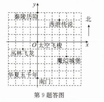 (2)西游传说的坐标是(3,3),华夏五千年的坐标是(-1,-4).