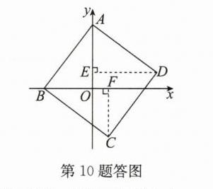 10. 正方形ABCD在平面直角坐标系中的位置如图所示,已知点A的坐标为$(0,4)$,点B的坐标为$(-3,0)$,求C,D两点的坐标.