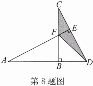 8. (2024春·无锡期中改编)如图,$CB⊥AD,AE⊥CD$,垂足分别为B,E,且AE,BC相交于点F.若$AB= BC= 16,CF= 8$,连接DF,求图中阴影部分的面积.