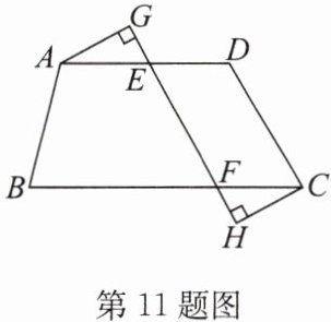 11. 如图,在四边形ABCD中,$AD// BC$,点E,F分别在AD,BC上,过点A,C分别作EF的垂线,垂足分别为G,H,且$EH= FG$.