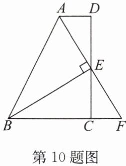 10. 如图,在四边形ABCD中,$AD// BC$,E为CD的中点,连接AE,BE,$BE⊥AE$,延长AE交BC的延长线于点F.$AD= 2cm,BC= 5cm$.