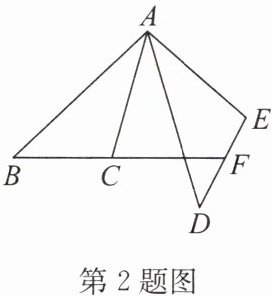 2. 如图,在$\triangle ABC和\triangle ADE$中,延长$BC交DE于点F$,$BC = DE$,$AC = AE$,$\angle ACF+\angle AED = 180^{\circ}$. 求证:$AB = AD$.