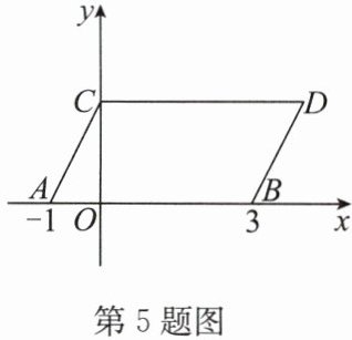 5. (昆山月考改编)如图,在平面直角坐标系中,点 A,B 的坐标分别为(-1,0),(3,0),现同时将点 A,B 分别向上平移 2 个单位长度,再向右平移 1 个单位长度,得到 A,B 的对应点 C,D,连接 AC,BD,CD。