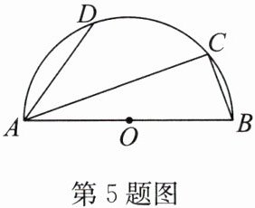 5.如图,AB为半圆O的直径,C,D是$\odot O$上的两点,$∠BAC= 20^{\circ },\overset{\frown }{AD}= \overset{\frown }{CD}$,求$∠DAC$的度数.