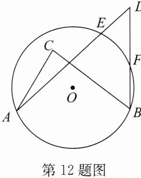 12.如图,A,B是$\odot O$上的两点,点C在$\odot O$内,点D在$\odot O$外,AD,BD分别交$\odot O$于点E,F.求证:$∠ACB>∠ADB$.