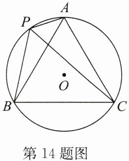 14.如图,A,P,B,C是$\odot O$上的四个点,$∠APC= ∠CPB= 60^{\circ }$.
