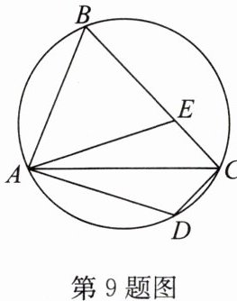 9.如图,AC是圆内接四边形ABCD的一条对角线,点D关于AC的对称点E在边BC上,连接AE.若$∠ABC= 64^{\circ }$,则$∠BAE$的度数为______