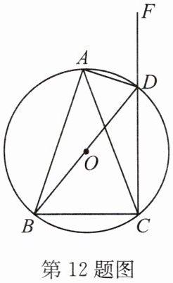 12.如图,四边形ABCD是$\odot O$的内接四边形,F是CD延长线上的一点,且DA平分$∠BDF$.