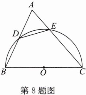8. 如图,在△ABC中,CA= CB,以BC为直径的半圆O与AB交于点D,与AC交于点E,连接DE.