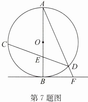 7.如图,在⊙O中,直径AB与弦CD交于点E, ⌢{AC}= 2⌢{BD},连接AD,过点B的切线与AD的延长线交于点F.若∠AFB= 68°,则∠DEB的度数是______