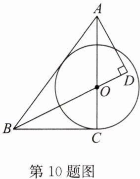 10. 如图,在$\triangle ABC$中,O为AC上一点,以点O为圆心,OC为半径作圆,与BC相切于点C,过点A作$AD\perp BO$交BO的延长线于点D,且$\angle AOD= \angle BAD$.
