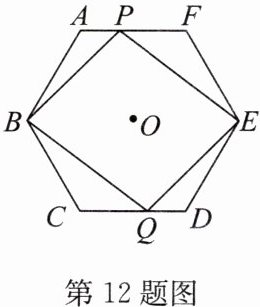 12.如图,中心为O的正六边形ABCDEF的半径为6cm,点P,Q同时分别从A,D两点出发,以1cm/s的速度沿AF,DC向终点F,C运动,连接PB,PE,QB,QE,设运动时间为$t(s).$