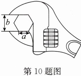 10.如图,工人师傅用扳手拧形状为正六边形的螺帽,现测得扳手的开口宽度$b= 3cm$,则螺帽边长$a= $