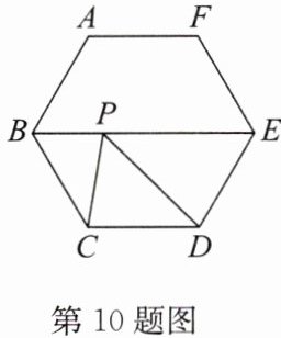 10. 如图,在边长为2的正六边形ABCDEF中,P是其对角线BE上一动点,连接PC,PD.